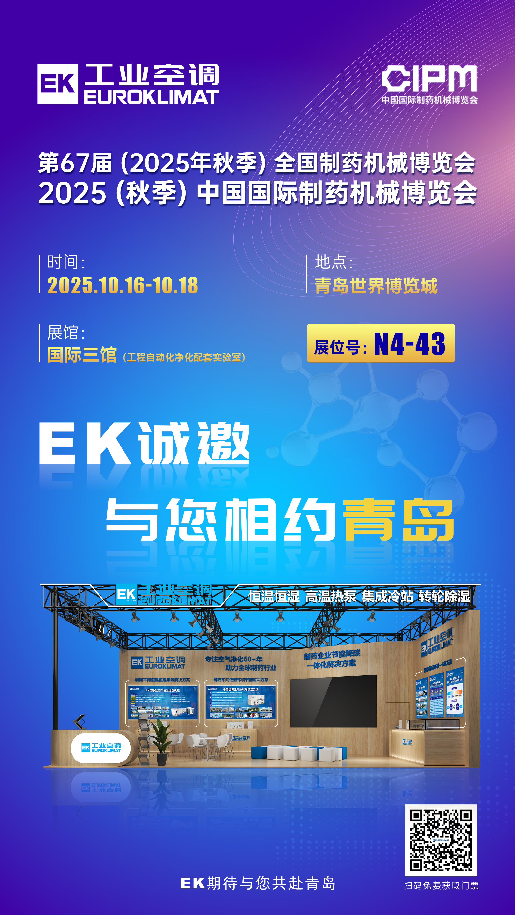第67屆秋季藥機博覽會即(jí)將(jiāng)開(kāi)啟!EK工業空調邀您共赴青島!2025-10-1310月16日至10月18日,青島世界博覽城:國際三館 N4-43 展位,EK工業空調與您不見不散!
