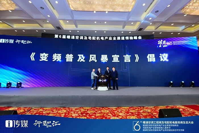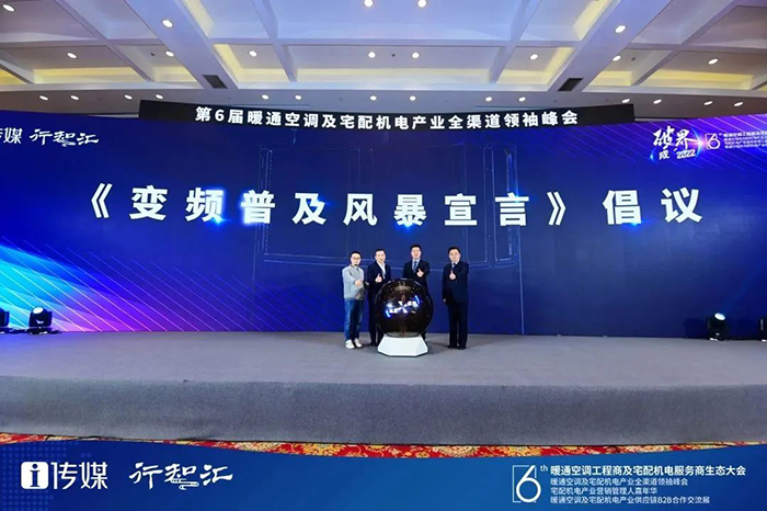基於“雙(shuāng)碳”政策目標、暖通空調行業“節能減排”重任、變頻技(jì)術的巨大市場空間等社會(huì)現狀,EK依托自身在“變頻”技術上的深厚積累,以及(jí)對“雙(shuāng)碳(tàn)”政策的積極響應,決定向全行業發起變頻模塊普及倡議,呼籲並引導行業邁入模塊機全變頻時代。EK空調市場營銷總監王健作為代(dài)表(biǎo),上(shàng)台宣讀了EK《變(biàn)頻(pín)普及(jí)風暴倡議》。