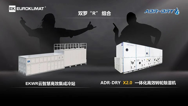 雙羅“R”組合由EKWR雲智慧高效集成冷(lěng)站和ADR-DRY X2.0一(yī)體化高效轉輪除濕(shī)機組成(chéng)。