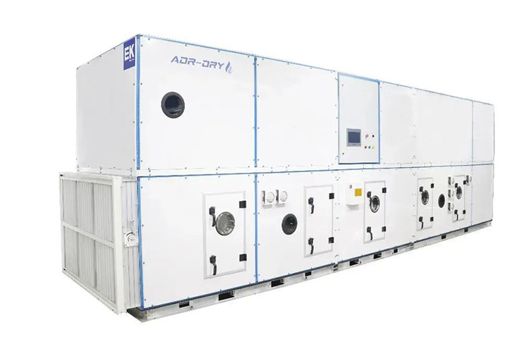 EK一體化高效轉輪除濕機 X2.0適(shì)用於低露點的工藝要求,最(zuì)低露點可達-80℃,風量範圍1500~80000CMH,可應用(yòng)於電芯烘(hōng)烤、注液、封口等工藝車間。