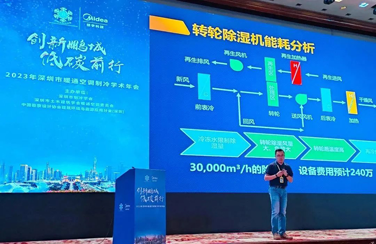 年會現場,EK空(kōng)調中國區市場營銷(xiāo)總監兼IECD事業部總監王健以《製冷空調係統在工業環境(jìng)控製領域(yù)的需求和解決方案》為主題發表(biǎo)演講,和現場嘉賓詳細介紹了ADR-DRY一體化高效轉輪除濕機、雲智慧高效集(jí)成冷站、“四管製”冷熱平(píng)衡機組、工業多聯等EK核心低(dī)碳產品和解決方案,以及它們在各工業細分領域的應用和案例。