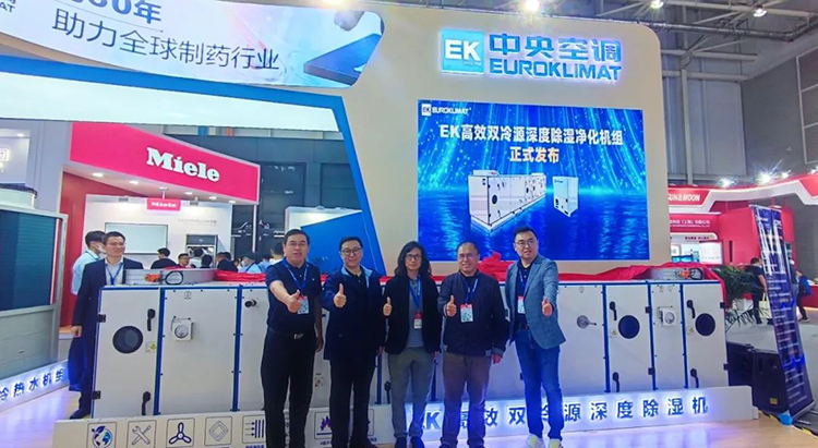 本屆展會(huì),EK以(yǐ)製藥廠(chǎng)房潔淨度、溫濕度需求以及高(gāo)能(néng)耗痛點為核心,針對製(zhì)藥車間、藥品倉儲、實(shí)驗室等不同場景提供(gòng)低碳化、智能化的專(zhuān)業空(kōng)氣解決方(fāng)案。EK高(gāo)效雙(shuāng)冷源深度除濕淨化(huà)機組作為本次參展的新品,在本屆藥機展隆重揭幕。