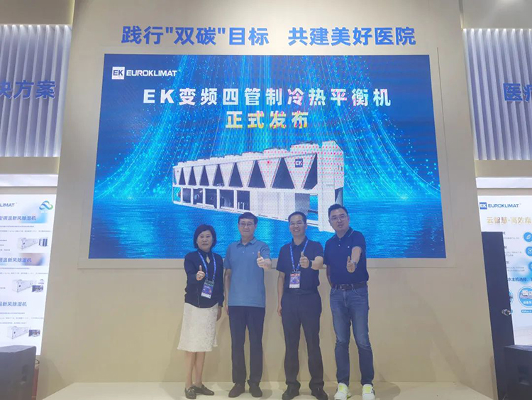 CHCC2023開(kāi)展首日,EK空調舉行了變頻四管製冷熱平衡機新品發布(bù)儀式。中國中元國際工程有限公司總工(gōng)程師黃中、華信醫(yī)療建築設計研究院總工程師嶽慧峰、EK空調華西區區總胡燕玲、EK空調中國區市場營銷總(zǒng)監兼IECD事業部總(zǒng)監(jiān)王健等行業(yè)專(zhuān)家和企業領導共同見證了該機組(zǔ)的正式發布。