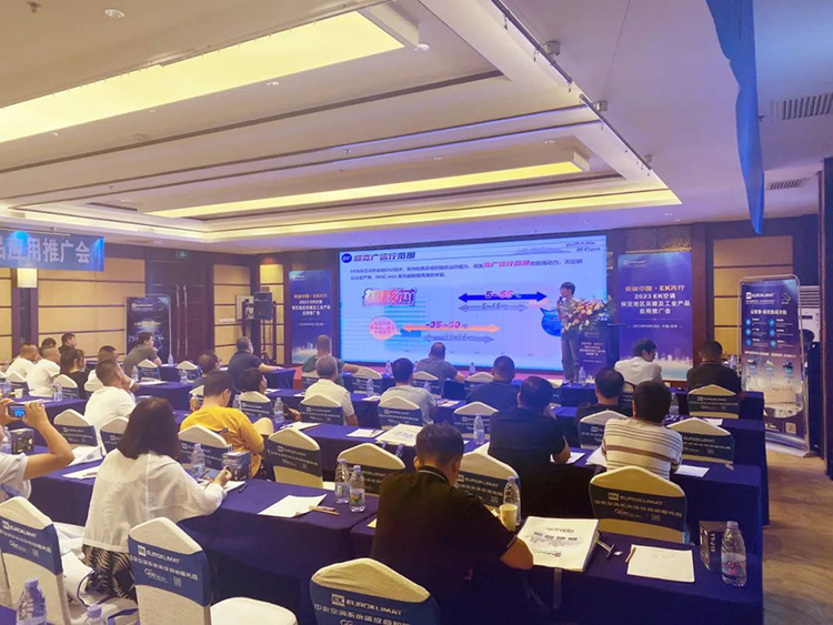 此次推廣會,EK空調產(chǎn)品經理和工程師就變頻超低溫熱泵、家用兩聯供、工業溫控、雲智慧高效集成冷站等EK核心產品的優勢(shì)特點、應用場景、應用案(àn)例(lì)進行了詳細介紹(shào)。