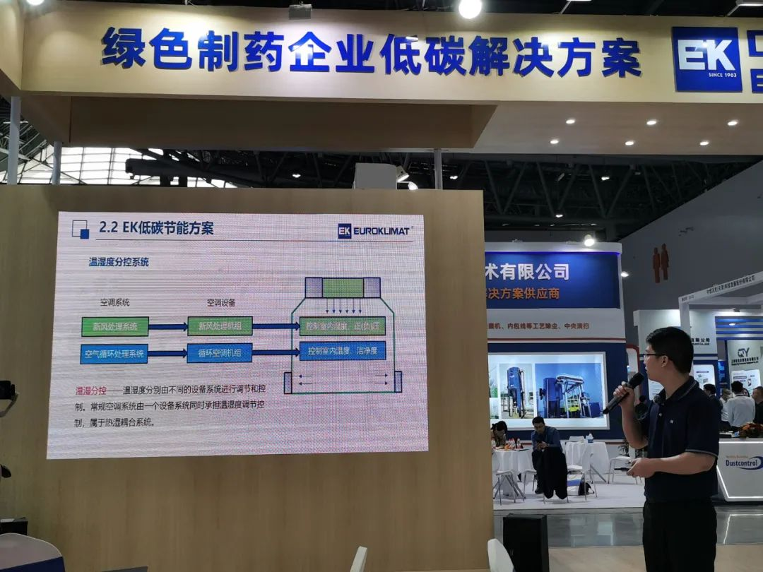 展位(wèi)現場,EK技術工程師通過多場主題演講,分別解析了製藥(yào)車間的低碳(tàn)恒溫恒濕係統、製藥車間低濕環境節能解決方案 、EK雲智慧分布式(shì)高效(xiào)集成能(néng)源站等EK綠色製(zhì)藥企業低碳解決方案。這(zhè)些節能產品和低碳方案的推出,為製藥行業提供了更多實現低碳環保建設的選擇,共同探討了(le)製藥企業高質量、可持續發展的(de)新思路。