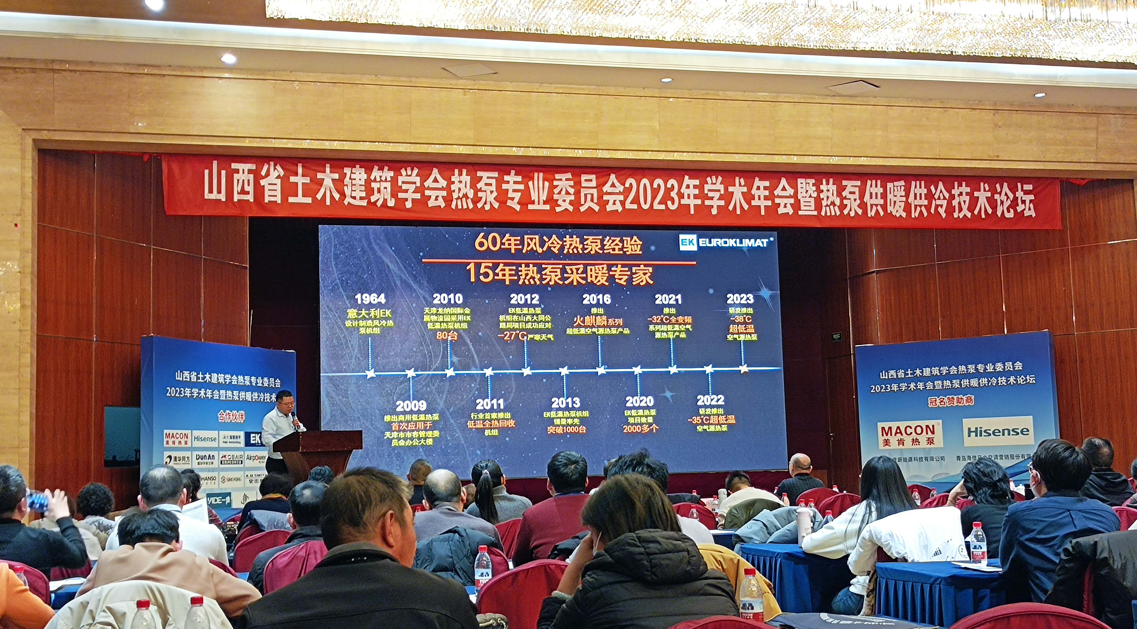 12月22日,山西省土木建築學會熱泵專業委員會2023年會暨熱泵(bèng)供暖供冷技術論壇在(zài)太原召開。作為擁有(yǒu)60年風冷熱泵經驗的歐(ōu)洲節能空調品牌,EK空調積極參與此次盛會,向業界展示了旗下(xià)豐富的采暖產品陣容,並被山西省土木建築學會熱泵專業委員會授予“理事單位”。