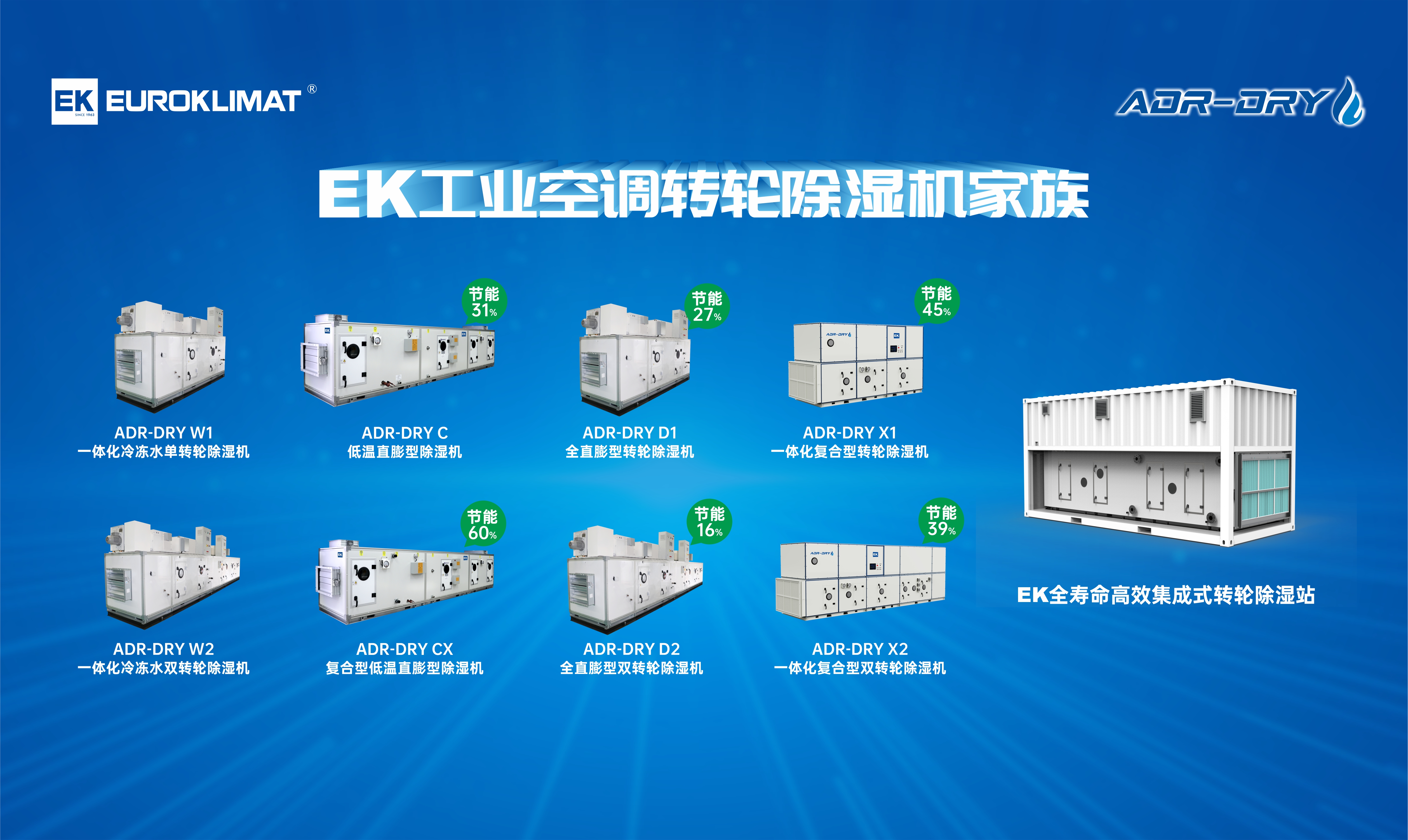 EK工業(yè)空調於1963年成立於意大利,擁有61年的發展曆程,是歐洲著(zhe)名的製冷與(yǔ)空調設(shè)備製造企業和係統節能方案專家,致力於提高(gāo)能源利用效率和可再生能源(yuán)應(yīng)用,在熱回收(shōu)、兩端能力、精密控製(zhì)方麵有著核心的競爭優勢。著眼於電芯企(qǐ)業降本增效需求,EK工業空調在新能源電池生產環境控製方麵加大投入(rù)研(yán)發力量,積極為新能(néng)源電芯企(qǐ)業生產車間環境控製(zhì)提供(gòng)更有價值的節能產品(pǐn)和(hé)係統。