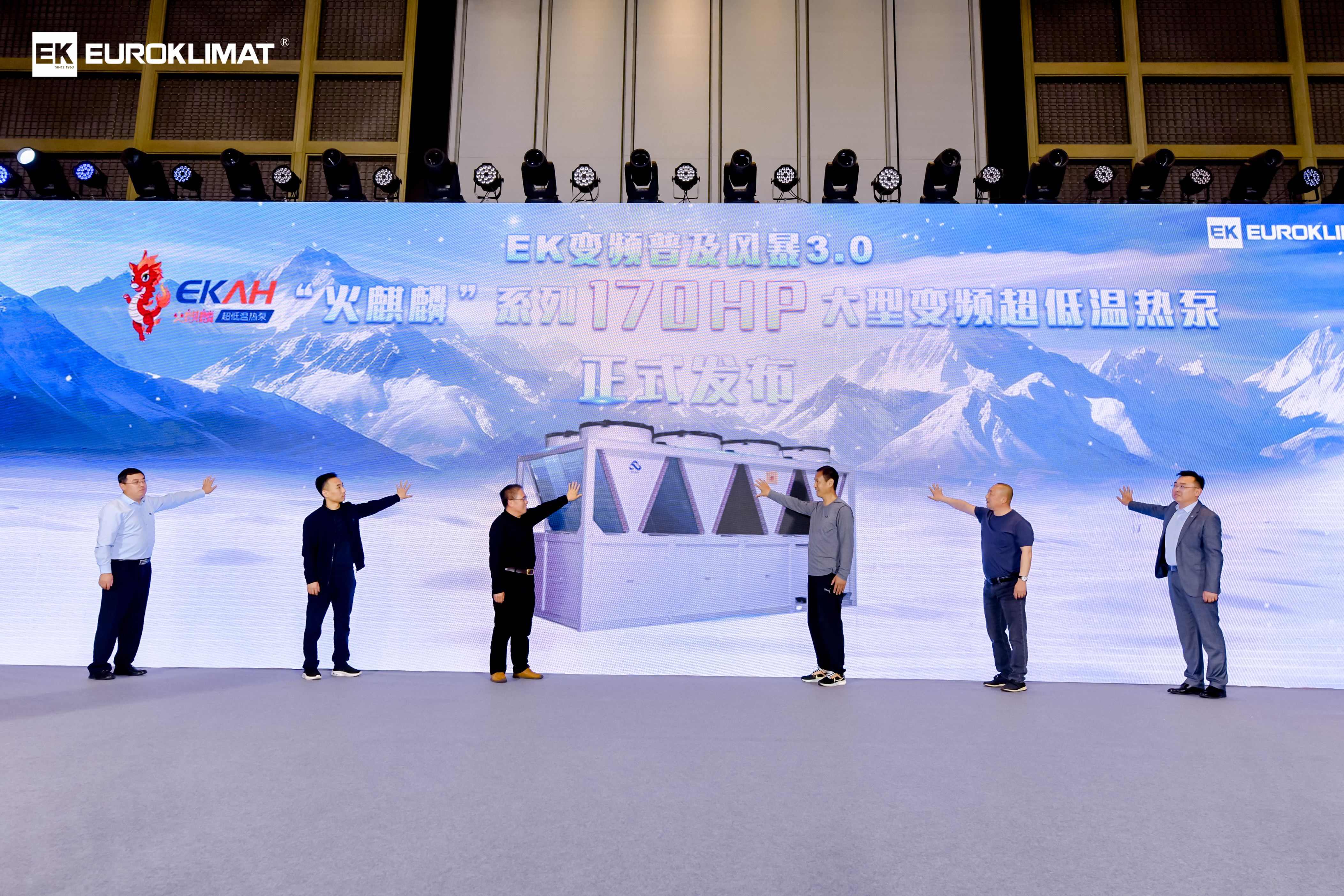 麵對市場不斷升(shēng)級的需求,EK空調在本(běn)次大會上正(zhèng)式啟動變頻普及風暴3.0,隆重發(fā)布“火麒麟”係列170HP大型變頻超(chāo)低溫熱泵,再次(cì)為行業注入新的(de)價值。