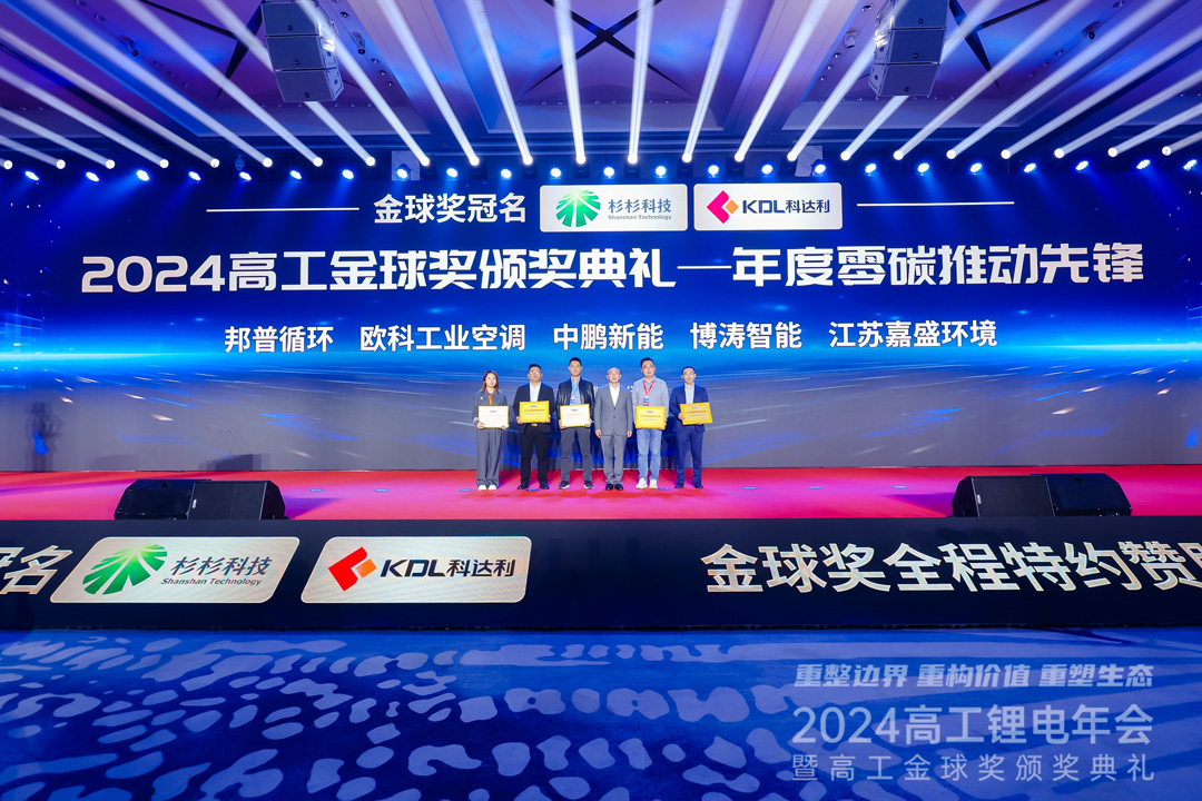 大會同期,2024高工金球獎頒獎典(diǎn)禮隆重舉行,EK工(gōng)業空調憑借其在節能減碳領域的(de)傑出貢獻和創新實踐(jiàn),榮獲“2024高工金球獎-年度零碳轉型先鋒”。這一獎項不僅是對EK工業空調在(zài)綠色鋰電工廠環境控製解決方案領域領先地位的認可,更是對其在(zài)推動鋰電行業綠色轉(zhuǎn)型方麵所做努力的肯定(dìng)。