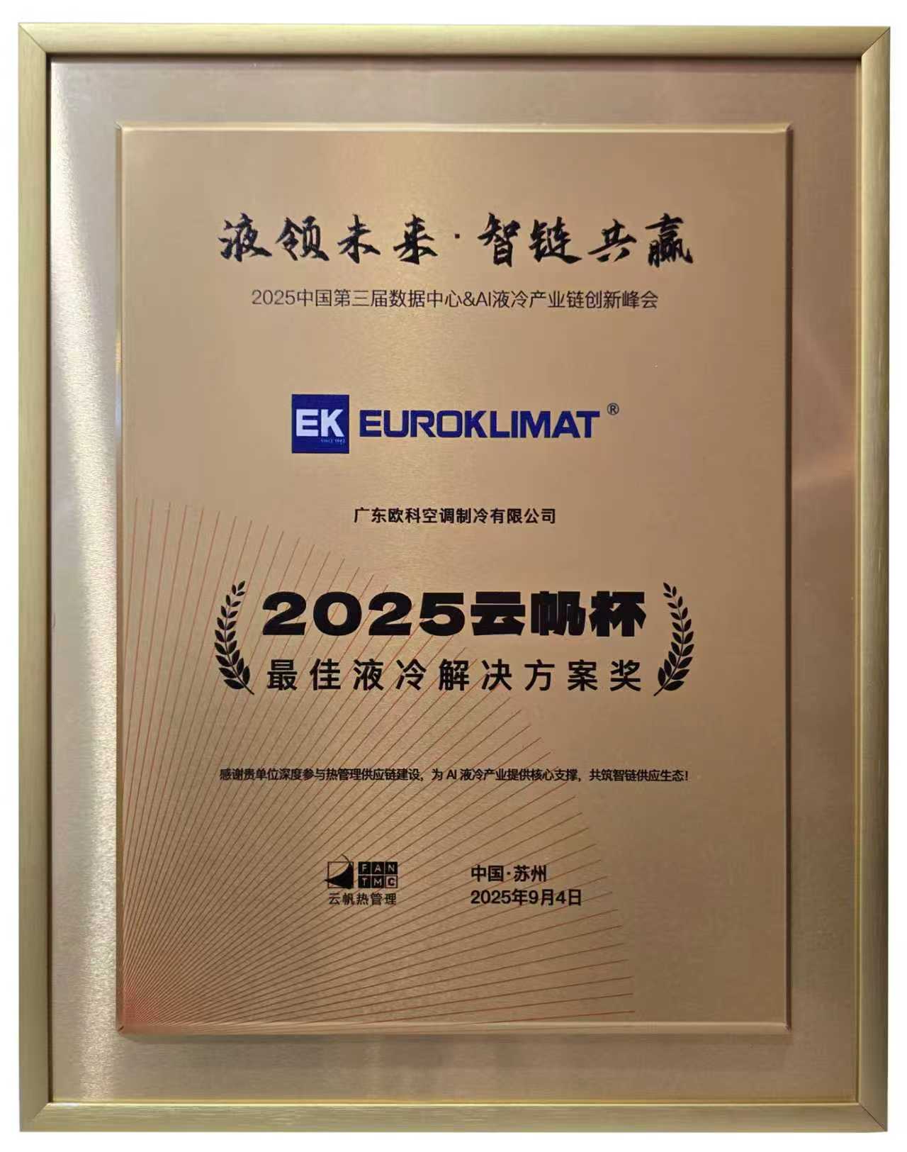 在9月4日上午舉行的頒(bān)獎典禮上,EK憑借在(zài)液冷技術領域的創(chuàng)新突破和卓越的產品解決(jué)方案,榮(róng)獲"雲帆(fān)杯2025年度最佳液冷解決(jué)方案獎"。