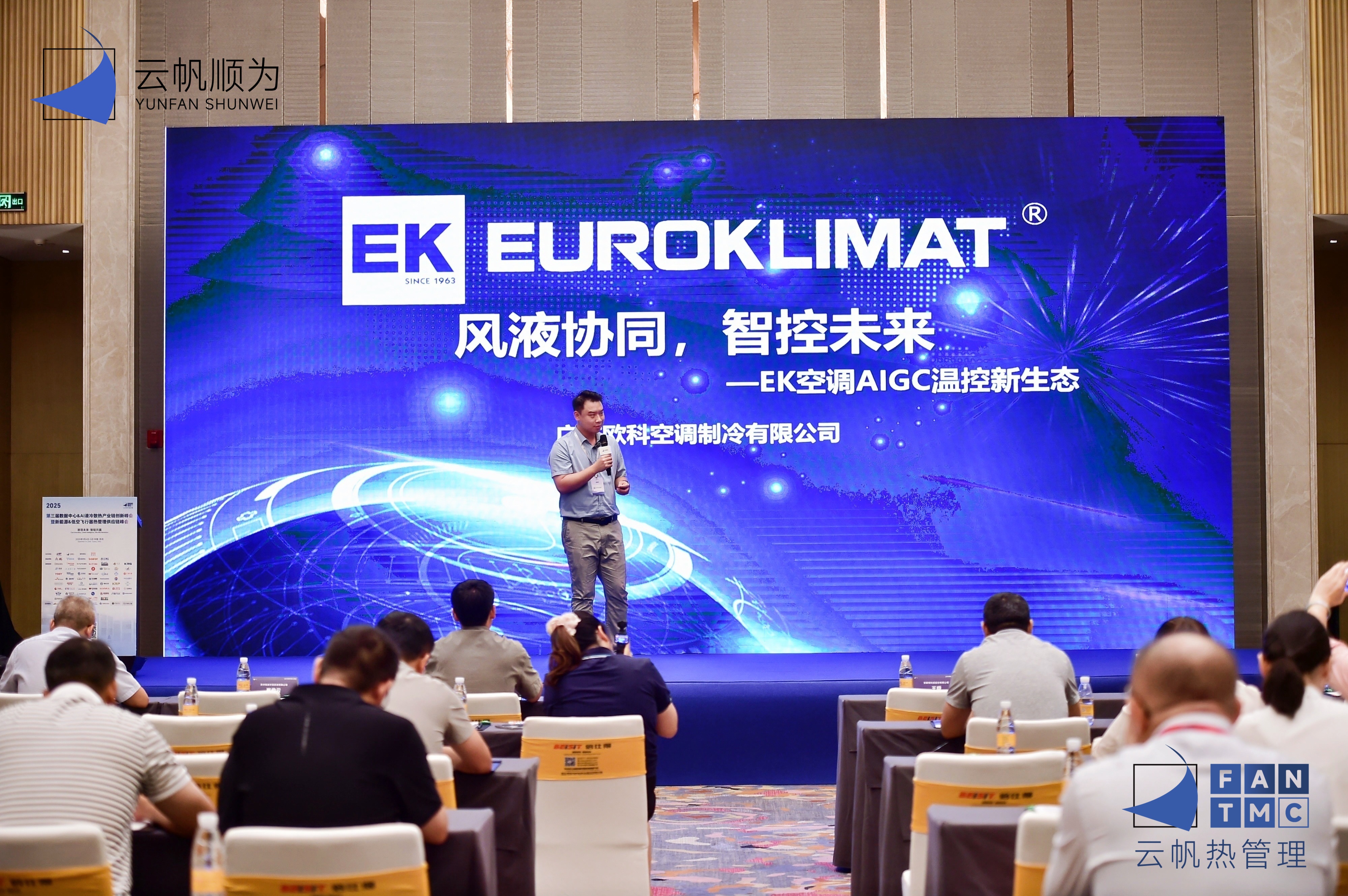9月5日上午,EK數據中心產品經理古正中在“數(shù)據中心冷板式&浸沒式液冷技術探討”分會場發表題為《風液協同,智控未來——EK空調AIGC溫控新生態》的專題演講。