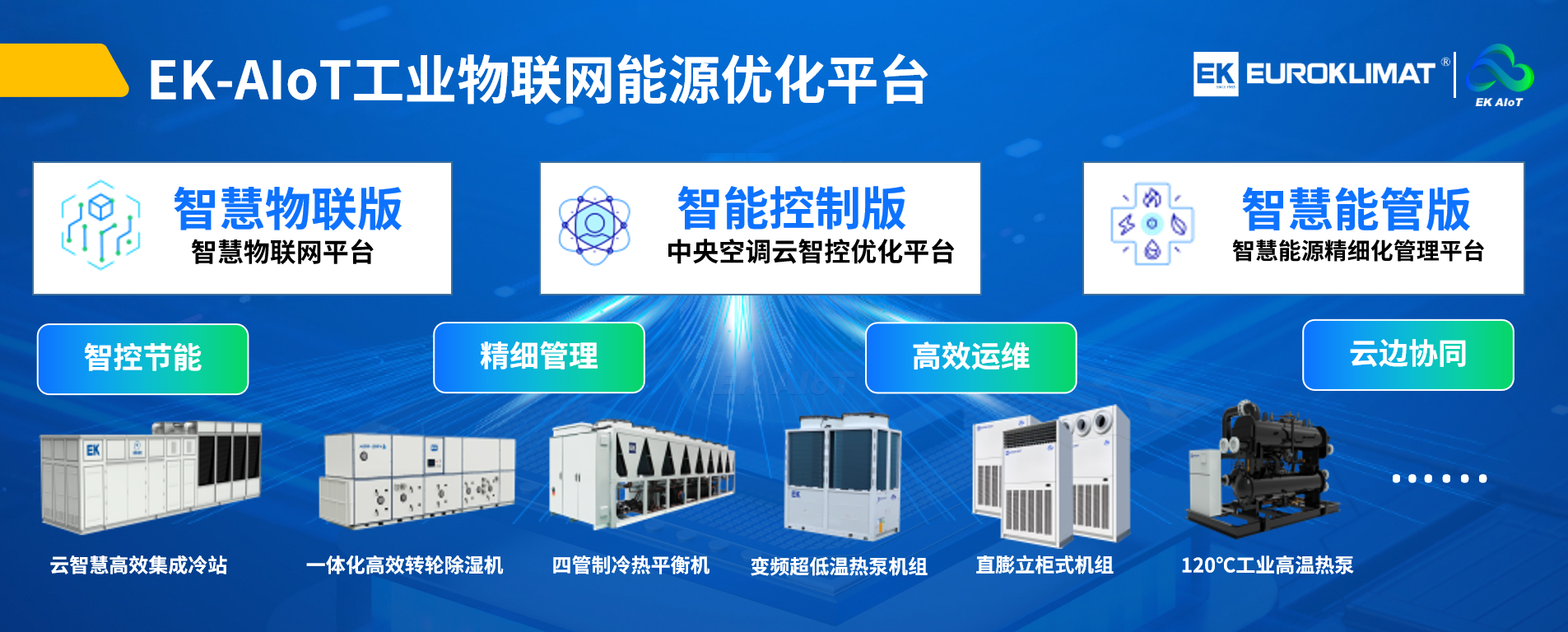 王健表示暖通控製進入“算力時代”,並(bìng)進一步為大家推介(jiè)EK-AIoT工(gōng)業(yè)物聯網雲智控能管優化平台。這是EK工業空(kōng)調(能優物聯)自主研發的一套集智能控製、智慧運維(wéi),並與環控場景、工業4.0應用場景深度(dù)結合的工業物聯網智能化管控平台,是以數據智能為核心驅動,對各(gè)應用場(chǎng)景全生命周期進行雲端價(jià)值賦能,旨在提供“雲 邊”端智能控製、遠程運維、線上協同(tóng)、節能增效等端到(dào)端一體式解決方案,充分發掘應用(yòng)場景(jǐng)節能價值和管理價(jià)值。