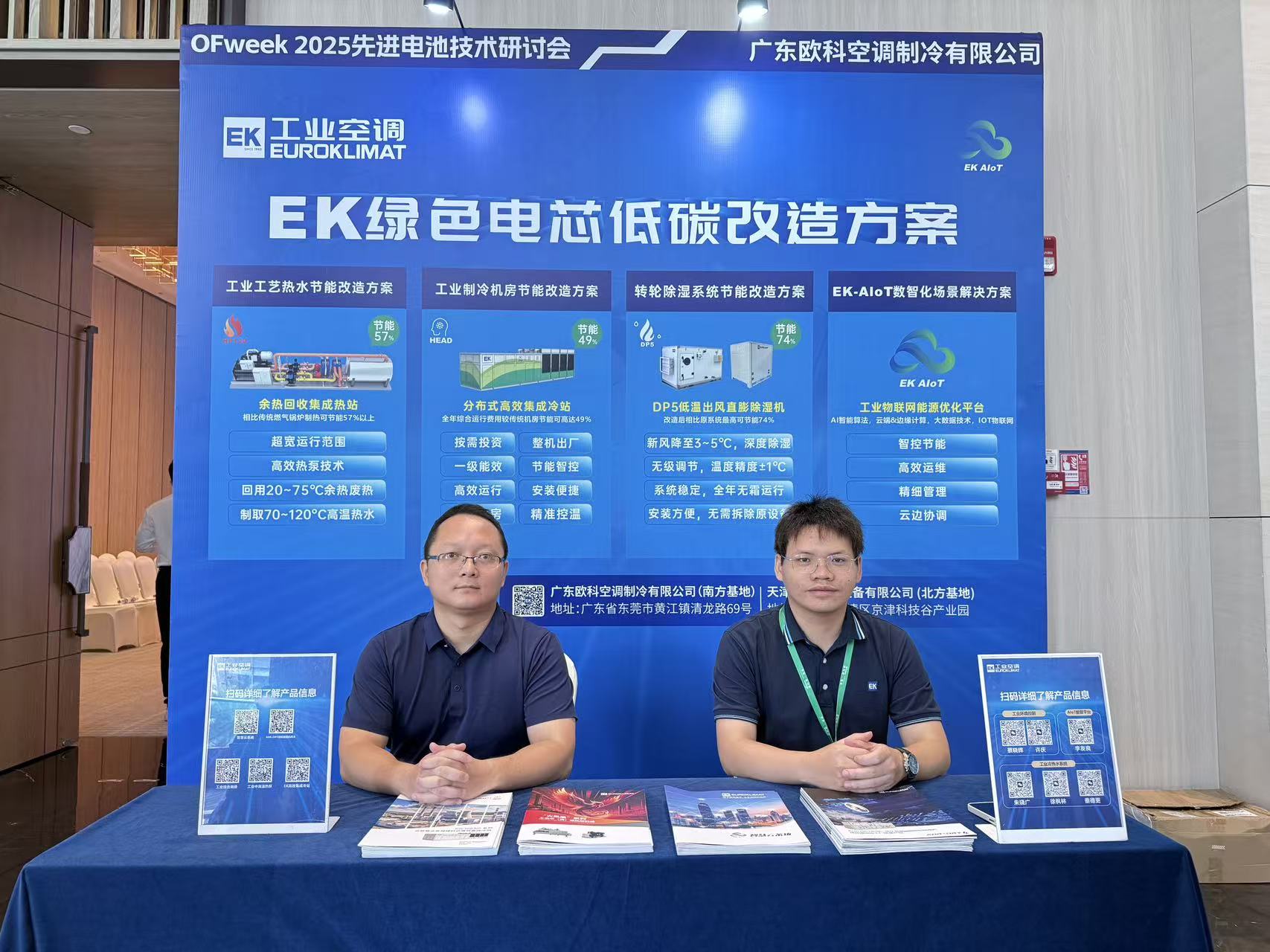 EK工業(yè)空調積極亮相本次行業盛(shèng)會,向行(háng)業展示綠色電芯低(dī)碳改造方案,並在圓桌對話中發出明確觀點:固態電池產線不能走老路(lù),必須將節能降碳納入核心考量。