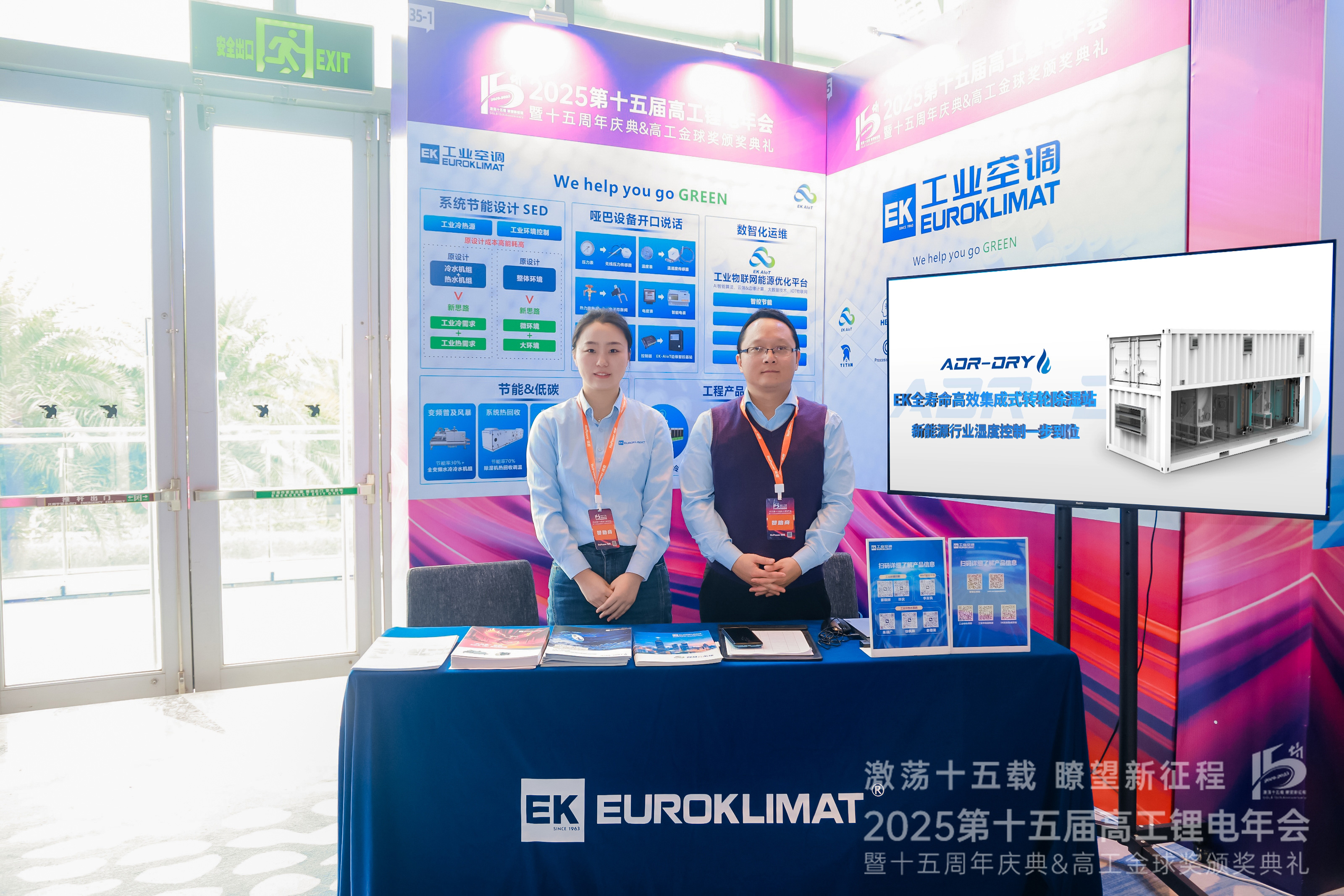 EK工業空(kōng)調專注工業環境(jìng)控製60餘年,始終致力於提高能源利用效率和可再生能源應用。本(běn)次大(dà)會現場,EK工(gōng)業空調設立專(zhuān)屬展位,技(jì)術工程師(shī)團隊為現場嘉賓詳細講解應用於新能源鋰電生(shēng)產的環境控(kòng)製(zhì)產品(pǐn)與節能降(jiàng)碳方案,獲得(dé)與(yǔ)會者(zhě)的廣泛(fàn)關注與好評。