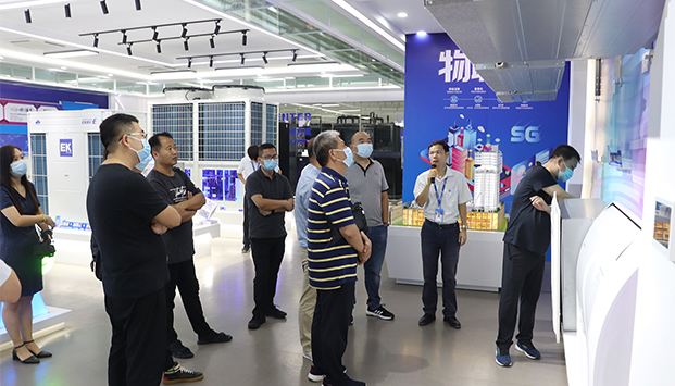 在參觀了EK空(kōng)調展廳和實驗室後,經銷商一行(háng)來到了(le)EK空(kōng)調生產車間(jiān),工程師重點和大家介紹(shào)了EK低溫熱泵采暖解決方案。