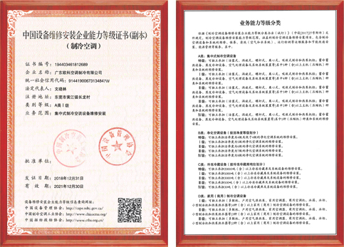 中國(guó)設備(bèi)維修安裝企業能力等(děng)級證(zhèng)書